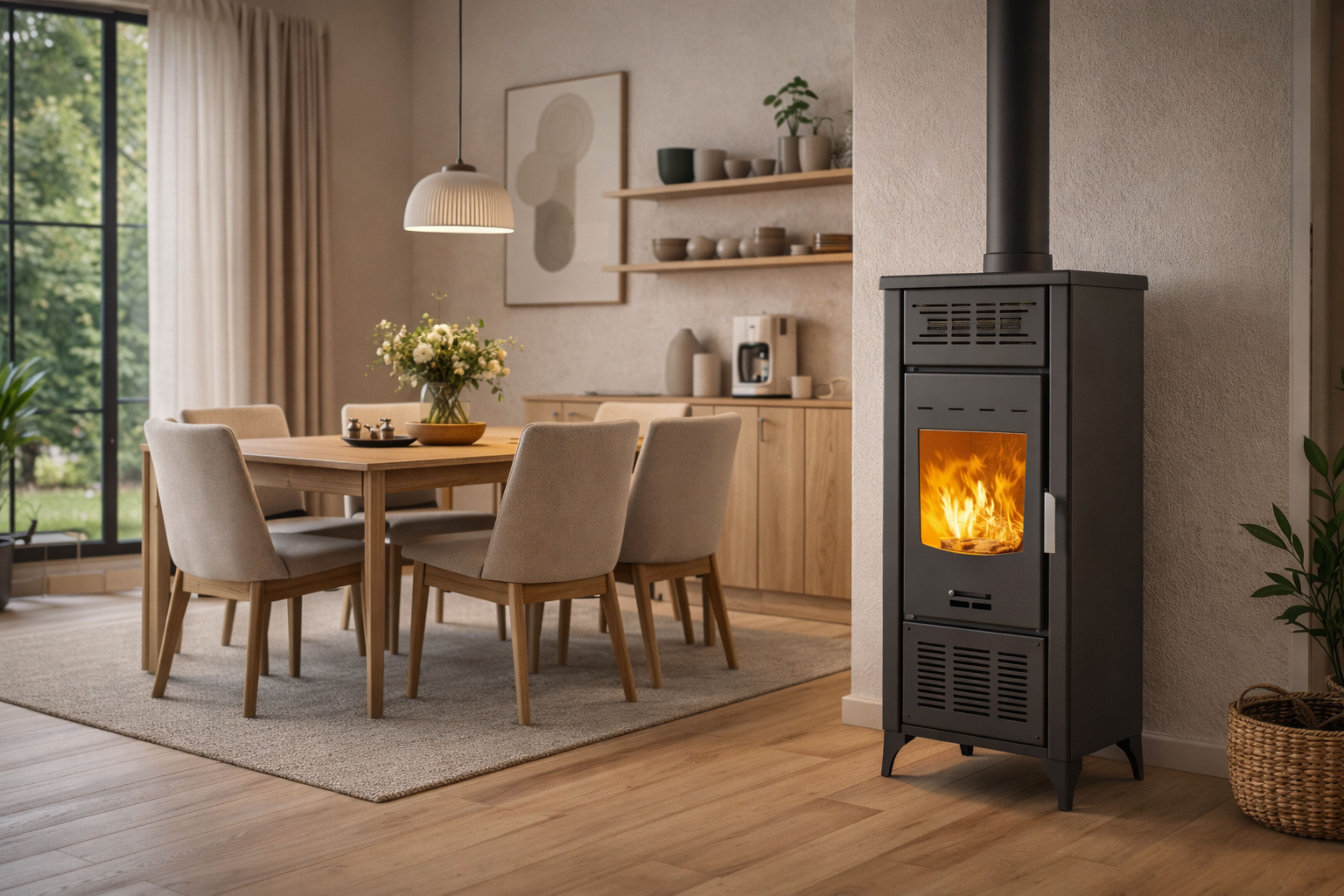 - Miljøvenlig opvarmning – Træ er en vedvarende energikilde. Moderne brændeovne med blæser giver mere fuldstændig forbrænding og lavere emissioner.