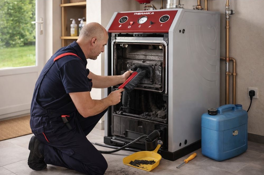 Vedligeholdelse anbefales mindst én gang om året – før starten på fyringssæsonen. Ved intensiv brug kan yderligere kontrol af brænder og filtre være nødvendig.