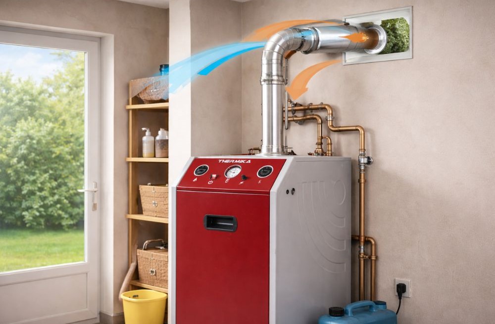 Støjen kommer hovedsageligt fra brænderen. Når det installeres i et separat fyrrum, er støjniveauet i boligarealet minimalt.