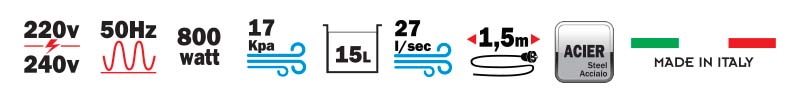 Den Cenetì 15 L / 800 W elektriske askestøvsuger, fremstillet af Ribimex i Italien, er designet til sikker og effektiv opsugning af kold aske fra pejse, brændeovne eller pelletovne. Den holdbare ståltank kan rumme op til 15 liter aske, mens den kraftfulde 800 W (230 V, 50 Hz) motor giver et vakuumtryk på cirka 17 kPa.